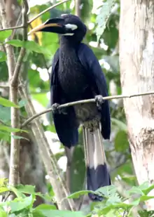 The bushy-crested hornbill (Anorrhinus galeritus) is a bird in the hornbill family. It is found in Brunei, Indonesia, Malaysia, Myanmar, and Thailand. Its natural habitat is subtropical or tropical moist lowland forests.