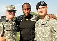 Boldin (center) with service members of the US Armed Forces while with the Ravens in 2010 at McDaniel College