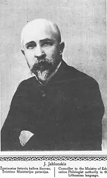 Jablonskis was a distinguished Lithuanian linguist who taught Greek and Latin at Jelgava Gymnasium. During summer vacations, Jablonskis collected data among native speakers in Lithuania for his linguistic studies. The Chodakauskases and Jablonskises soon became close friends and Jablonskis often spent summers with the Chodakauskases.[23]