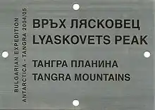 Geographical names in Antarctica reflect the history and practice of Antarctic exploration. The nations involved in Antarctic research give new names to nameless geographical features for the purposes of orientation, logistics, and international scientific cooperation. As of 2021, there are some 20,091 named Antarctic geographical features, including 1,601 features with names given by Bulgaria.[1][2] Since the Bulgarian Antarctic base is situated in the South Shetland Islands, most of the Bulgarian place names are concentrated in that area too, especially on Livingston Island, Greenwich Island, Robert Island, Snow Island, and Smith Island. However, two early Bulgarian names were given even in 1989 (by the then State Council, a collegial presidency) to geographical features on Alexander Island in relation to field work carried out on that island by the first Bulgarian Antarctic expedition during the 1987/88 season.