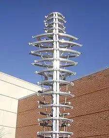 Antenna Man is part of a series consisting of around six other antenna forms. One of these is located on Massachusetts Avenue, Indianapolis; this work is entitled Viewfinders. Another sculpture, also titled Antenna Man and similar in theme, is located in Crown Hill Cemetery in Indianapolis.[2] Originally Antenna Man was left partially constructed while work was being completed on the larger version of Antenna Man (21 ft. by 3 ft. by 3 ft). The larger version was on exhibit at Navy Pier from May until October 1999; it was later moved to the campus of Illinois Institute of Technology.