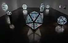The sculptures, made of stainless steel, glass, and LED lights, have shown internationally to great acclaim.