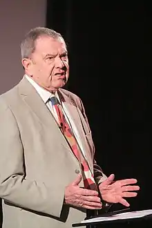 ![]() King giving a talk on "The Blunders of our Governments" at the Essex Book Festival, 2014 | |
