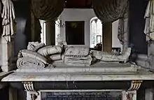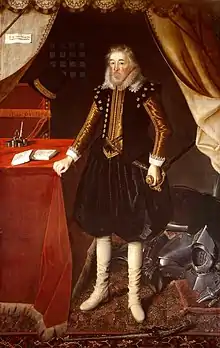 He died on 11 September 1617 and was buried in St Leonard's Church, Apethorpe, where his elaborate marble monument with recumbent effigies of himself and his wife survives.[7] His portrait survives at Emmanuel College, Cambridge.