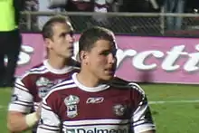 After being involved in an alleged incident where Watmough abused a club sponsors 21-year-old daughter and then punched the sponsor at the club's 2009 season launch,[7] Watmough started the following season in good form, winning the man-of-the-match award for his two-try performance in Manly's victory in the 2009 World Club Challenge. He was selected for Australia in the one-off test match against New Zealand on 8 May 2009.[8]