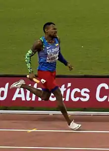 He has qualified to represent Colombia at the 2020 Summer Olympics[2] where he won the silver medal in the 400 metres with a time of 44.08, finishing behind Steven Gardiner.