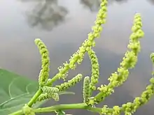 Antidesma ghaesembilla is a species of plant in the Phyllanthaceae family. It is native to an area from northern Australia to the Philippines, Zhōngguó/China, and west to India.[3] The shrub or tree usually grows in moist soils in plant communities ranging from savannah to gallery forest to closed forest. It is associated with a number of species of fungus, insects and animals, including emus. Amongst the Mangarrayi and Yangman people of north Australia, the sweet ripe fruit of the tree are much appreciated and linked to the build-up season and to the koel. As well as food, the plant is used as a calendar-plant, for dyeing, in traditional medicine, in religious/magical practices, as fuel, and as an insecticide.