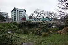 The sheds are named after Antigua Street and the Antigua Bridge, which is today the northern terminus of Antigua Street;[3][4] although until 1904, Antigua Street extended as far north as Armagh Street.[5] The boat sheds are right next to the northern end of the Antigua Bridge and opposite Christchurch Hospital.