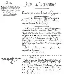 Antoine Darlan was born in 1915 in Kouango (Ouaka) to Elizabeth Mandalo, an Aboriginal, and Joseph Darlan[1] a European of Portuguese origin.[2] Although his official date of birth according to the Kouango birth registry was 8 June,[3] it is impossible to know his true date of birth with certainty. His father never recognized him, and Darlan did not become a French citizen until 11 September 1937.