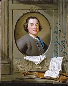 Like his compatriot Johann Andreas Kauchlitz (a few decades later), his entire musically significant life was in the rich Dutch Republic, which attracted musicians from various European countries, even the great Italian Pietro Antonio Locatelli. He died in Leiden, a Dutch university city. An allegorical portrait of the composer by Herman van der Mijn from 1743, in oil on panel, (sized 7.4 x 5.9 inch (18.8 x 15 cm.), was sold from the Old Master Paintings collection of Lillemor Herweg in 2005.