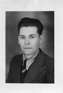 Nazi German authorities limited the education of ethnic Polish children to only four years during the occupation of Poland in order to undermine Polish culture.[2] Despite the ban, Dobrowolski joined the Secret Teaching Organization to provide underground education in occupied Poland, according to Auschwitz historian Adam Cyra.[1] Dobrowolski was discovered and arrested in June 1942 by the Gestapo.[1] He was sent to the Auschwitz concentration camp, where he was assigned the prisoner number 38081.[1] Dobrowolski later recalled that "Auschwitz was worse than Dante's hell."[2] He was transferred to the Gross-Rosen concentration camp and Sachsenhausen concentration camp, remaining a prisoner until his release in 1945.[1][2]