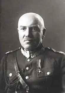 During the early stages of the Battle of the Border the northern Army Łódź was partially surrounded by quickly advancing German forces. Army Kraków, attacked by the German 14th Army under the command of General Wilhelm List, was forced to retreat to protect its flanks from 2 September onwards. A careful tactician, General Szylling followed the strategy of 'retreat to fight another day' instead of engaging the superior enemy. General Szylling, despite the increasingly difficult situation for the Polish forces, was able to retreat successfully towards the city of Lublin, following his orders and avoiding several German attempts to surround him.[1] On 19 September Szyling's forces joined with Army Lublin of General Tadeusz Piskor in the Battle of Tomaszów Lubelski, the second largest tank battle[2] of the campaign. Polish forces followed the plan of General Piskor, but the German defences proved too strong and the majority of Polish forces, including the headquarters of both generals, were encircled and surrendered on 20 September.