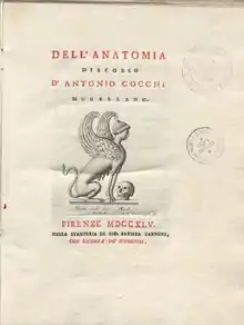 - Dell'anatomia. Firenze: Giovanni Battista Zannoni. 1745.