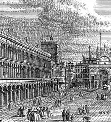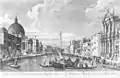 Born in Venice, Visentini was a pupil of the widely travelled Baroque painter Giovanni Antonio Pellegrini,[1] who had painted some decors in English country houses at the beginning of the 18th century. Visentini is best known today as the engraver for Canaletto's first great series of Venetian vedute published under the title Urbis Venetiarum Prospectus Celebriores ex Antonii Canal,[2] organised by British resident Joseph (Consul) Smith (1682–1770). The series was begun around 1728 and by the time it was completed in 1735, thirty-eight etchings and engravings had been printed.