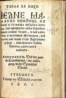 ![]() The first page of 1561 Cyrillic work "Tabla za Dicu", a translation of Primož Trubar's "Primer" by Antun Dalmatin | |