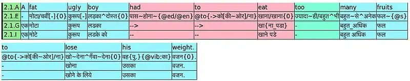The layered output is unique to Anusaaraka. Thus, source language text information and how the Hindi translation is finally arrived at can be accessed by the user. The critical feature of the layered output is that the information transfer is done in a controlled manner at every step thus, making it possible to revert without any loss of information. Also, any damage to information that cannot be avoided in a translation process is then done gradually. Therefore, even if the translated sentence is not as 'perfect' as human translation, with some effort and orientation on reading Anusaaraka output, an individual can understand what the source text is implying by looking at the layers and context in which that sentence appears.
