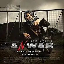 Anwar is a 2010 Indian Malayalam-language action thriller film written and directed by Amal Neerad, starring Prithviraj in the titular role with Prakash Raj, Mamta Mohandas, Nithya Menen, Assim Jamal, Lal and Sampath Raj in supporting roles. The film was also dubbed into Hindi as Diler Hindustani in Tamil under the same title.[4][5] Elements of the film were inspired by the 2008 American spy thriller film Traitor.[6]