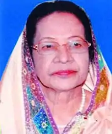 Anwara Begum (died on 21 April 2018)[1] was a Bangladeshi academic. She was the first ever female to serve as a vice-chancellor of a university in Bangladesh.[2] In 2006, she was awarded Ekushey Padak by the Government of Bangladesh for her contribution to education.[3] She was married to the 14th President of Bangladesh, Iajuddin Ahmed, and served as the First Lady of Bangladesh from 2002 until 2009.[4]