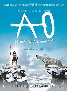 Ao: The Last Hunter (French: Ao, le dernier Néandertal) is a 2010 French prehistoric paleoanthropological fiction film directed by Jacques Malaterre, and is loosely based on the first novel of the trilogy Aô, l'homme ancien by Marc Klapczynski.[2][3]