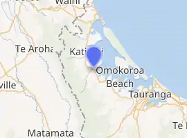 Aongatete is a settlement and rural community in the Western Bay of Plenty District and Bay of Plenty Region of New Zealand's North Island. It is located on State Highway 2, south of Katikati and north-west of Omokoroa. The landscape consists of a long valley descending into the Tauranga Harbour.[1]