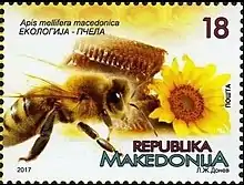 The Macedonian bee (Apis mellifera macedonica) is a subspecies of the Western honey bee. It is found mainly in North Macedonia, Northern Greece and other places in the Balkans as well. Originally this subspecies was described based on morphological characteristics by Friedrich Ruttner, as were the adami, cecropia and cypria subspecies.