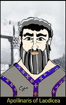 Apollinaris the Younger, also known as Apollinaris of Laodicea and Apollinarius (Ancient Greek: Ἀπολινάριος;[1] died 382[2]) was a bishop of Laodicea in Syria. He is best known as a noted opponent of Arianism. Apollinaris's eagerness to emphasize the deity of Jesus and the unity of his person led him to deny the existence of a rational human soul in Christ's human nature. This view came to be called Apollinarism. It was condemned by the First Council of Constantinople in 381.[3]