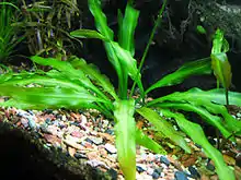 Many hybrids of this species are sold in the aquarium trade. It will tolerate most water conditions. It likes a bright position but will grow in partial shade. It is a popular specimen plant for aquariums. Some plants will go dormant in the winter and for several months can be kept at a lower temperature, others seem to keep growing.