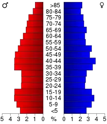 23.70% of the people are under the age of 18, 7.80% from 18 to 24, 25.10% from 25 to 44, 23.50% from 45 to 64, and 20.00% 65 or older. The median age was 41 years. For every 100 females there were 91.50 males. For every 100 females age 18 and over, there were 89.50 males.