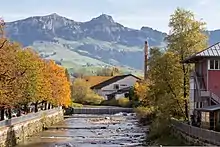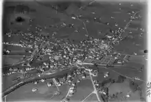 Appenzell is a village,[1][2][3] a town,[4] but not a municipality, and the capital of the canton of Appenzell Innerrhoden in Switzerland. Appenzell has no municipal government of its own; rather, the different parts of Appenzell belong to and are governed by the districts (and municipalities) Appenzell, Schwende and Rüte.[5] Because of that, for firefighting, energy and water, the village Appenzell has a special-purpose municipality, the Feuerschaugemeinde.