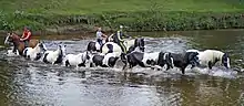 The Appleby Horse Fair, also known as Appleby New Fair, is "an annual gathering of Gypsies and Travellers in the town of Appleby-in-Westmorland in Cumbria, England."[1] The horse fair is held each year in early June, attracting roughly 10,000 Gypsies and Travellers, about 1,000 caravans, several hundred horse-drawn vehicles, and about 30,000 visitors. The Gypsy and Traveller attendees include British Romanichal, Irish Travellers, Scottish Gypsy and Traveller groups, Kale (Welsh Romanies) and more.[1]