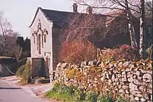 Stone houses line the steep, main street between High Hall at the top and Low Hall at the bottom. The Tudor-style grade II* listed High Hall[12] was restored by Sir William Craven (known as Appletreewick's own "Dick Whittington")[10] who became Sheriff and Lord Mayor of London at the beginning of the 17th century.[13] Craven was born in a cottage almost opposite High Hall, one of a pair converted into St. Johns church.[14] Lower down is Monks Hall, largely rebuilt in 1697 on the site of Bolton Priory's grange. The pub, the Craven Arms, was also owned by William and has much of the village history on display including a fully heather-thatched cruck barn to look round. The cruck barn was the first one to be built in Upper Wharfedale in over 300 years and used original materials such as lime and horsehair to line the walls and sheep's wool for insulation.[15][16]