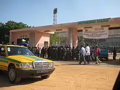 Concurrently with the developments surrounding Barry's murder, a 13-year-old girl, known in the press as Binta, was allegedly raped by a uniformed paramilitary police officer (part of the Police Intervention Unit) at the Independence Stadium during an inter-schools sports competition. A medical examination confirmed that the girl had been raped, and GAMSU again pressed the government for answers, calling for the girl to be allowed to identify the rapist. Following a long delay in any government action, GAMSU requested a police permit to hold a public protest. The request was denied, but, referring to their constitutional right to protest, GAMSU called its members to take part in a peaceful march towards the capital city of Banjul.[2]