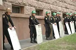 The demonstration spun out of control and escalated into a riot on April 7th, with protesters attacking the parliament building and the presidential palace, throwing stones at the buildings, with the riot police attempting to protect the buildings.[14] In the afternoon of 7 April the rioters broke into the parliament building, looted it and set it on fire. Police forces had regained control of the city center by 8 April, arresting several hundred protesters. Following the arrests, numerous cases of excessive force usage, including beatings and torture by the police, were reported by the detainees.[15]