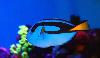 The industry is largely unregulated and lacks a central data base to assess its impact upon the environment.[1] Different fisheries are regulated or managed differently and with various degrees of oversight. For example, lack of oversight has led to the widespread use of cyanide to stun fish to collect them in the Philippines although officially it is illegal.[1] While the US is required to monitor import of species listed by the Convention on International Trade in Endangered Species (CITES) the majority of fish imported for aquariums is lumped together as marine tropical fish (MATF) by the US Fish and Wildlife Service.[1] Thus import of endangered species within this group is not monitored. The lack of an adequate database about tropical fish, - life cycle, growth and reproductive rate, population development over time - makes it difficult to monitor the impact of aquarium fisheries. Overcollection can be damaging to the coral reef as the example of the regal blue tang has shown. As these fish eat algae that overgrow corals, their removal endangers the health of the coral.[1]