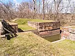 There was a stone cutting mill just at this point, on the upstream side. It cut stone from Marble Quarry (above White's Ferry on the canal), and Cedar Point Quarry (which was around Violette's lock, one lock downstream), as well as the quarries of Seneca sandstone. It was powered by canal water diverted into a mill race to a turbine.[4]: 57