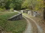 This aqueduct, made of local limestone, was damaged during the Civil War by Mosby's Raiders.[4]: 150 The stonework wall "went out" (as a boatman would say) three times: 1865, 1887, and finally in 1920.[2]: 79