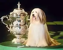 At Crufts between 2004 and 2006, Willy won the title of Best of Breed each time,[2] and placed third in the Utility Group in 2006,[3] winning the group in 2004.[4] After winning Best in Show at the Birmingham National Dog Show in 2006, Willy became the most successful Tibetan Terrier of all time in the UK, having amassed 40 challenge certificates, breaking a record which had stood since 1970.[5]
