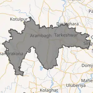 Prior to delimitation Arambagh Lok Sabha constituency was composed of the following assembly segments:[4] Tarakeswar (assembly constituency no. 185), Pursurah (assembly constituency no. 192), Khanakul (SC) (assembly constituency no. 193), Arambagh (assembly constituency no. 194), Goghat (SC) (assembly constituency no. 195), Chandrakona (assembly constituency no. 196), Ghatal (SC) (assembly constituency no. 197)