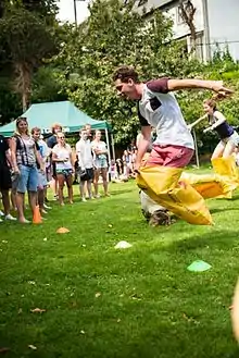 ![]() Garrick Tremain ![]() A student competes in a sack race at the 2014 Arana Carnival |
