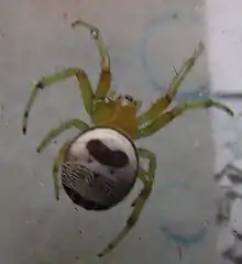 Araneus mitificus, commonly known as the kidney garden spider or pale orb weaver, is a species of orb-weaver spider found in South, East, and Southeast Asia.