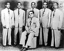 ![]() The original members of Arcaño y sus Maravillas. Antonio Arcaño, sitting; Cachao, second from the left. | |