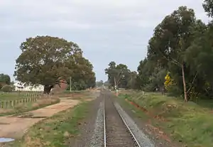 Arcadia is a closed railway station on the Goulburn Valley railway in the township of Arcadia, Victoria, Australia. The station opened at the same time as the railway from Mangalore to Shepparton on 13 January 1880 and closed on 30 June 1977.[1] The platform was on the west side of the line, with only the dirt mound remaining today.