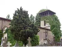 is registered as an historical monument.[26] It was rebuilt in 1900. The central body of the building, flanked by two wings, is surmounted by a glass roof which illuminates the interior of the building. It stands on a small hill in the middle of a small park planted with oaks.