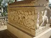 The Archeological Museum of Eleusis is a museum in Eleusis, Attica, Greece. The museum is located inside the archaeological site of Eleusis. Built in 1890, by the plans of the German architect Kaverau, to keep the findings of the excavations, and after two years (1892) was extended under the plans of the Greek architect J. Mousis.