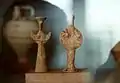 Many of the findings are associated with these ceremonies. The Votive piglet reminds the sacrifice of these animals for the purgation of the believers at Phaleron, which took place in some of the preparatory stages of the ceremonies, and the kernos, a ceremonial vessel which was used at the sacrifices and at the offerings made to the altars and the temples, during the return of the sacred symbols through the Holy Road from the Ancient Agora back again to the Sanctuary for the final initiation.
