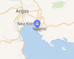 Nafplio was known as Nauplia in Classical Antiquity and was the port of Argos, in ancient Argolis.[4] It was said to derive its name from Nauplus, the son of Poseidon and Amymone. Pausanias reports that the city was originally a colony of Egyptians brought to Argos by Danaus the son of King Belus of Egypt, said to be the son of Poseidon.[5][6]