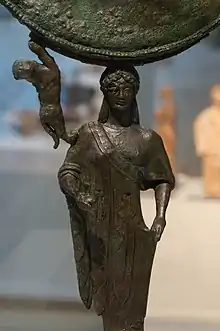 Bronze mirror, Caryatid, Halieis, 490-470 BCE