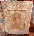 A Hellenistic Greek encaustic painting on a marble tombstone depicting the portrait of a young man named Theodoros, dated 1st century BC during the period of Roman Greece