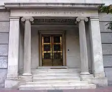 The Archaeological Society of Athens (Greek: Εν Αθήναις Αρχαιολογική Εταιρεία) is an independent learned society.[1] Also termed the Greek Archaeological Society, it was founded in 1837 by Constantinos Belios, just a few years after the establishment of the modern Greek State, with the aim of encouraging archaeological excavations, maintenance, care and exhibition of antiquities in Greece.[1]