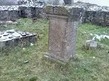 Maletaj or Gumnishta is situated 18 kilometers in the north-east side of the Municipality of Vushtrri. In this village is found a Dardani location named Katunishte. The substructure of this location is situated in a valley that has the form of the letter T. It has three entrances and it is all enclosed. The main entrance is called "The doors of Katunishta" (Albanian: "Dyert e Katunishtes"). Next to this location is situated "The Hill of Church" where is the groundwork of the church. None of this locations has not been studied yet.[19] In this village was found an altar of the Antiquity period, with inscription that has not been deciphered yet because it is very damaged. Mycrotoponyms in Maletaj: The Crown Mountain, The Goddess Creek, Venc Hill, Creek above Torishta, Fountain of Mata, Fountain of Nika etc.